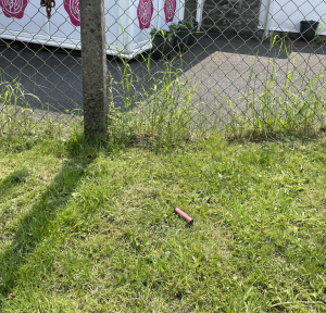 On the grass outside the school we found the first disposable vape we’ve found in the village. The number of children choosing to vape – to take on a powerful addiction to nicotine – is a worrying recent development but it IS encouraging that we’ve only found this one so far.